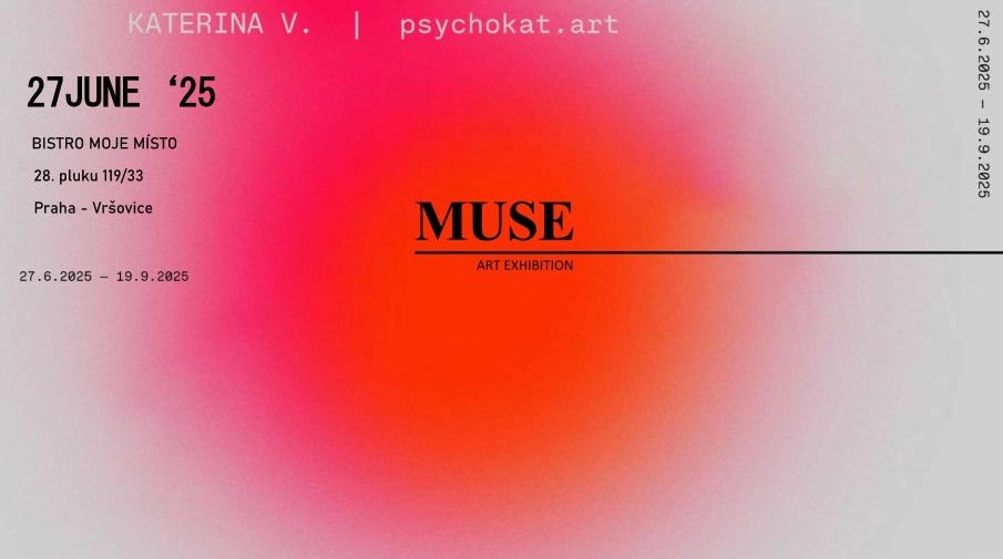 MUSE. Múza není jen vnější inspirací, ale i vnitřním stavem, ve kterém jsme naladěni na něco vyššího, co nás přesahuje. Někdy přichází nečekaně, jindy se jí musíme otevřít a dát jí prostor. Múza je připomínkou, že tvořivost je dar. Přesně to je hlavní téma výstavy MUSE od psychokat.art.